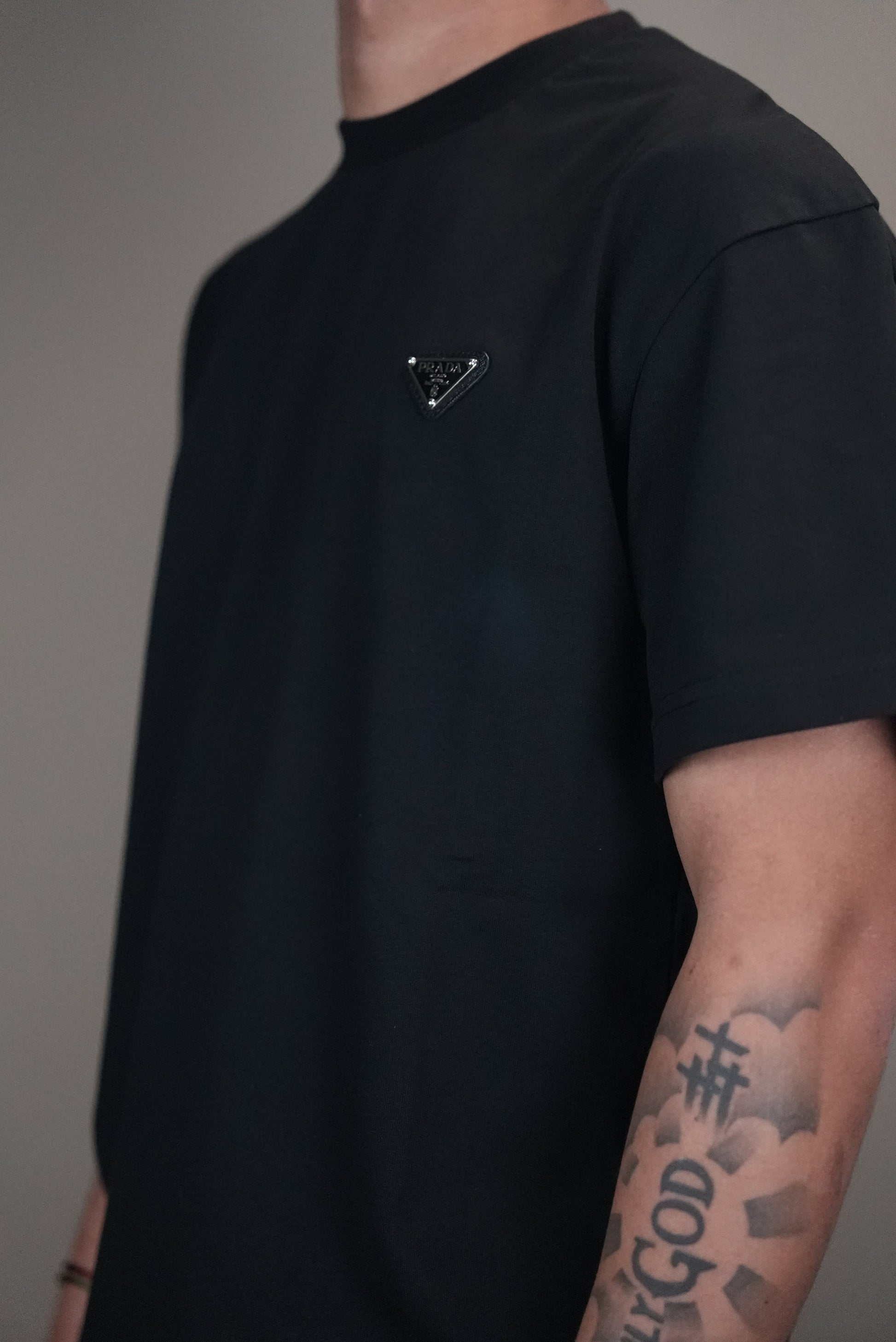 PRADA SHIRT ZWART LOGO OP BORST